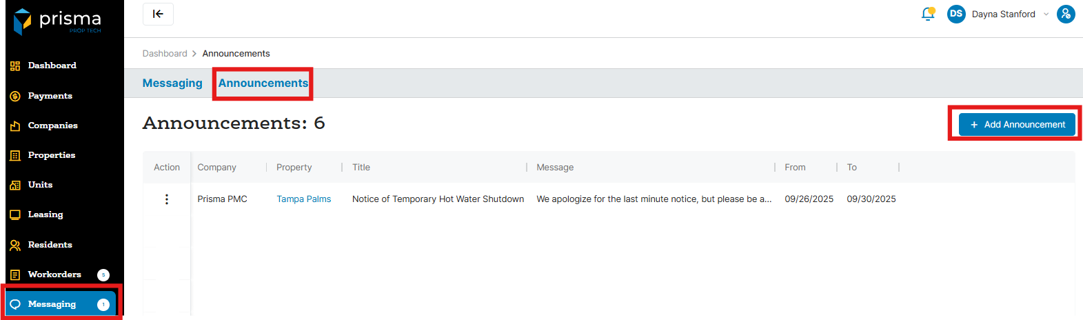 To post an announcement to appear on the resident portal dashboard, follow the steps below: