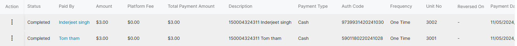 4. To view the details of a batch, click on the three dots located under the ‘Action’ column, and then select the ‘Transactions’ button
